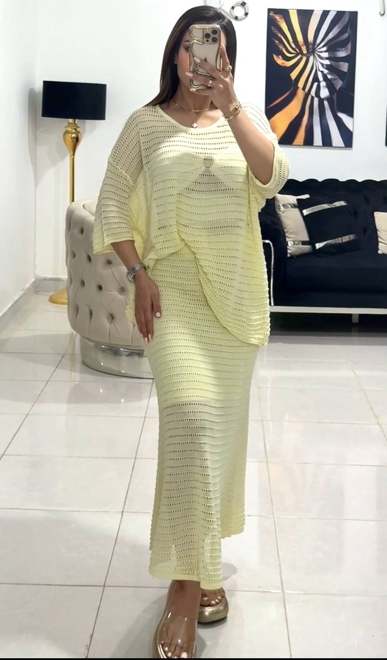 ست بلوز ودامن قلاب بافی توری